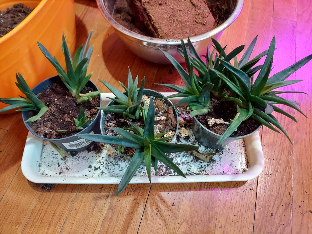 Overcrowded aloe that had fallen out the pot at the store, I was able to take it home for free. All these plants had been in one pot.