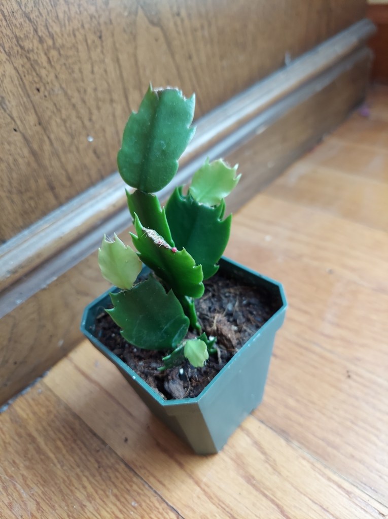I have taken and successfully rooted cuttings from my Christmas cactus (pictured above), goldfish, and polka dot plants. I am also experimenting to see if I can air layer my peperomia succulents to get more plants. My two poinsettias are still alive, and the hot pink one is putting on a flush of new growth. The red variegated appears to be in a holding pattern for now, which is better than I have managed in the past.