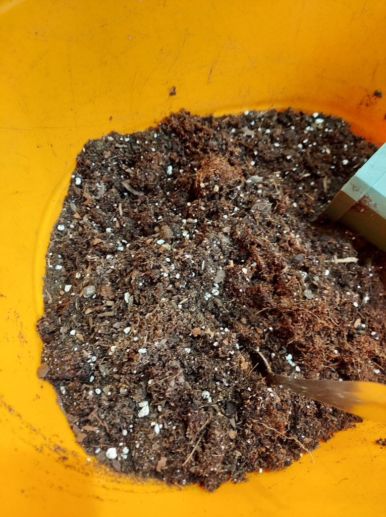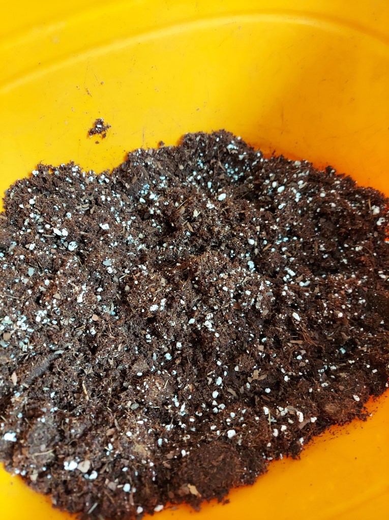 Moisten your potting mix and fill your containers, press down slightly to make sure everything is snug.