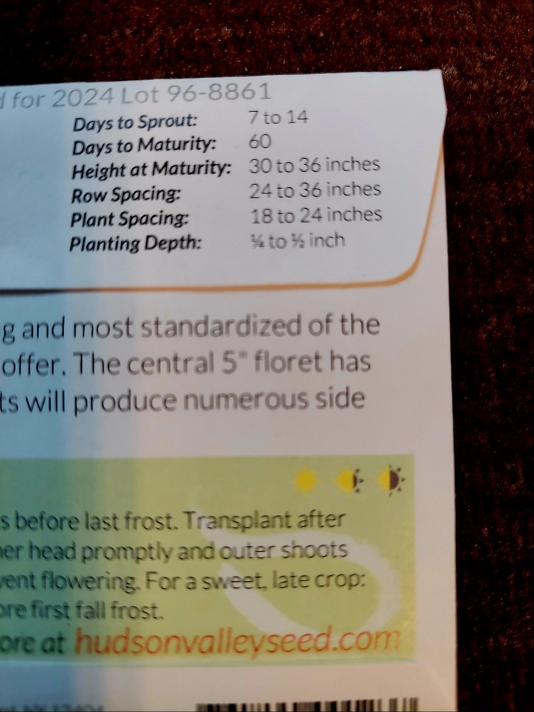 Growing Zone: It is very important to know your first and last frost dates before sowing seeds. Growing zones are less important, since your microclimate might vary greatly from the generic zone. If you do not know your frost dates this can easily be found by checking the farmers’ almanac. You can do an online search, and once you enter your zip code it will provide your first and last frost, which is your average growing season. Warm loving crops cannot go outside before the spring frost date, and will be killed off by the first fall frost. My frost free days are typically from mid May-early October. Seed packets will state when they should be sown, often stated as weeks before or after your spring frost date. Please pay attention to these details.