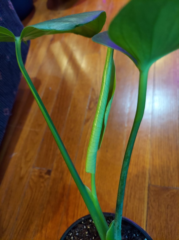 My new split leaf monstera is putting out a new leaf, and I’m excited to see what it looks like once it unravels in a few days.